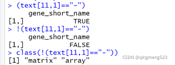 5查看text数据中的第11行第1列的数据是否为“-“并取非及查看取非得类型