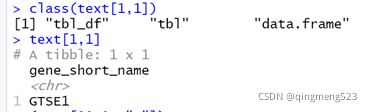 4查看text数据框中的第一行第一列的数据类型,并展示第一行第一列的数据及列名