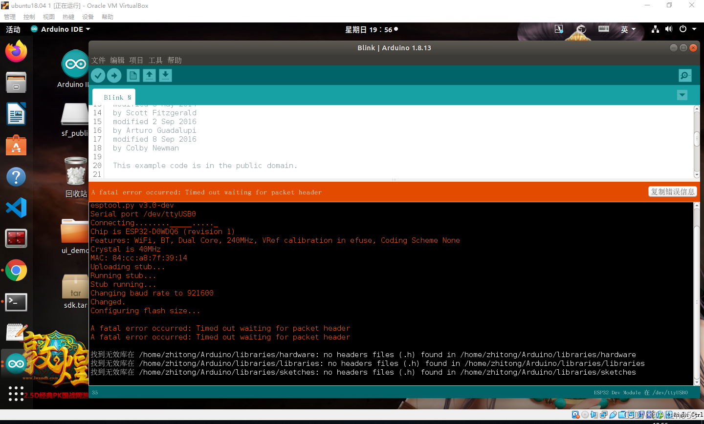 当我用arduino ide给esp32 下载程序的时候,出现如下错误提示: