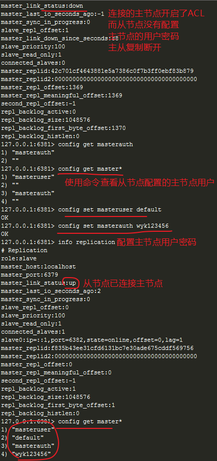 #配置主节点ACL账号密码(Redis6开启ACL的情况)