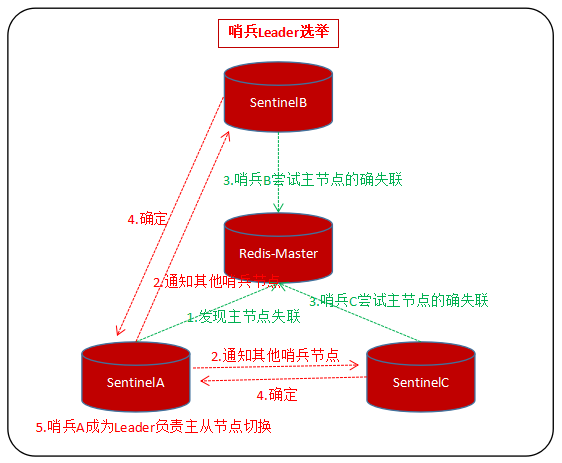 - 通知:当监控节点出现故障,哨兵之间进行通讯。