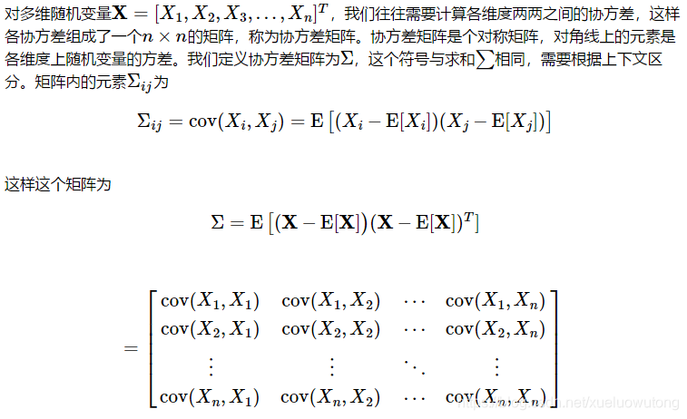 协方差矩阵( 多维随机变量的协方差矩阵)