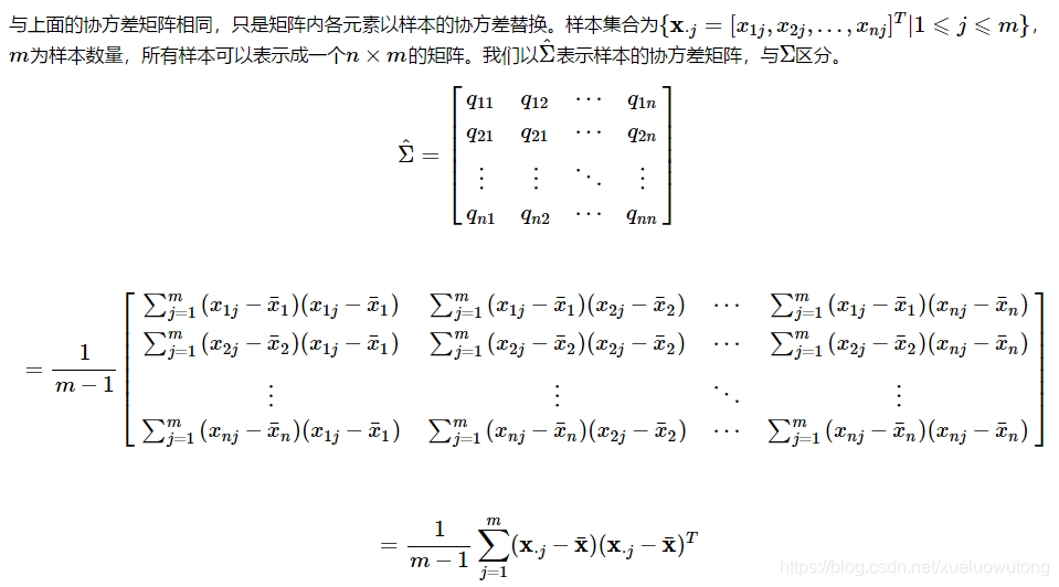 是分布的一个总体参数。(2)样本的协方差。是样本集的一个统计量,可作为联合分布总体参数的