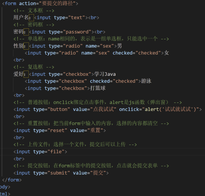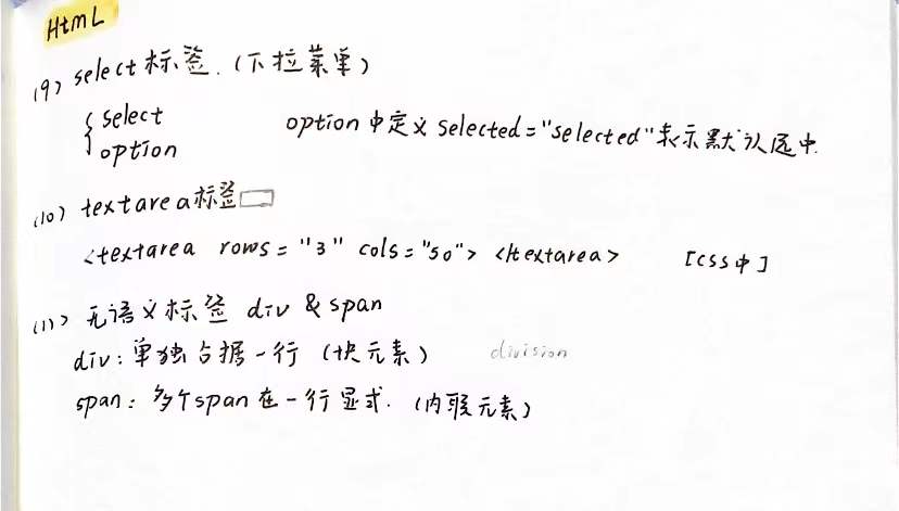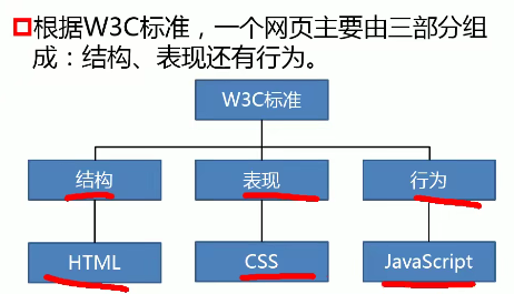 - html (页面的元素,如按钮,下拉菜单,等等)<结构-骨架>