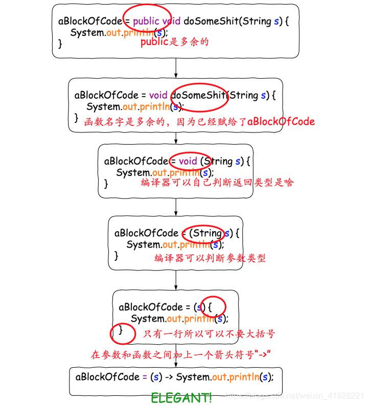 但是到这里我们这里还缺了一些东西,就是变量的类型,所有的lambda表达式的类型都是一个接口。接下来的东西请看下面这个链接的,讲的更深入