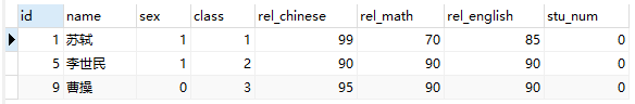 stu_num, name, sex, class, rel_chinese, rel_math, rel_english