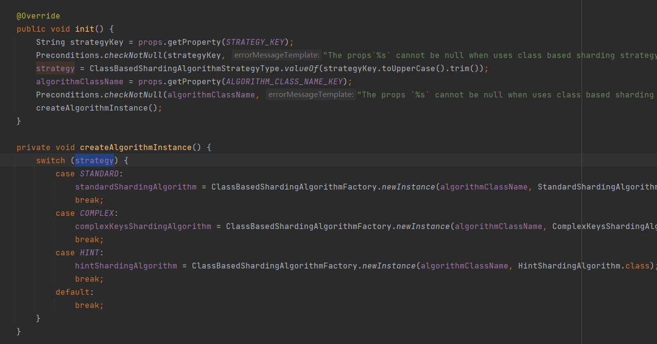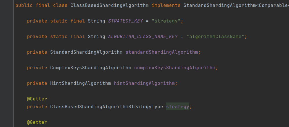 ClassBasedShardingAlgorithm 实现了多个分片算法接口,每一种策略的接口都实现了;