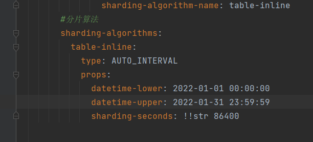 分片算法只需要指定类型,和配置一个几个分片的属性即可