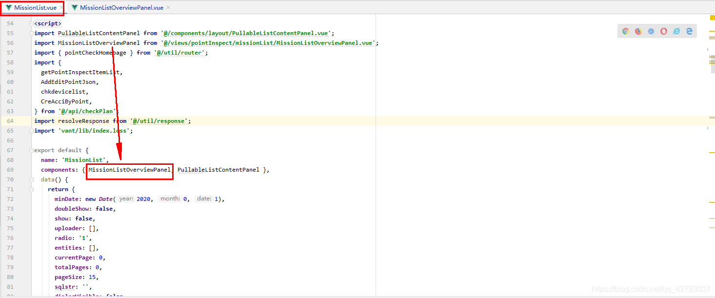 MissionList 是父组件 MissionListOverviewPanel是子组件