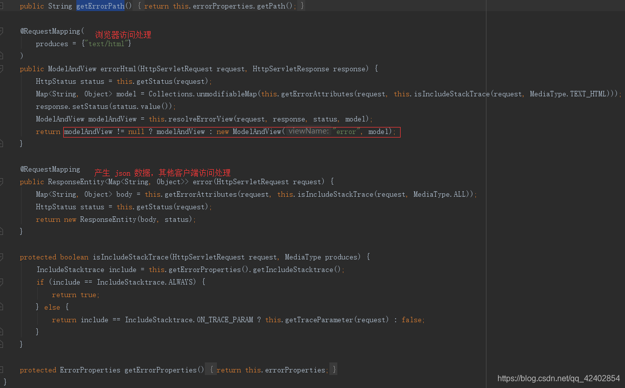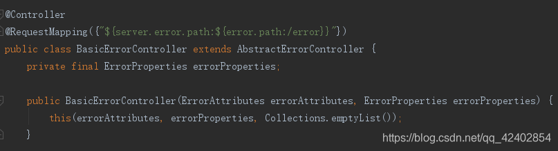 (1)查看 BasicErrorController 类,默认处理/error请求的。