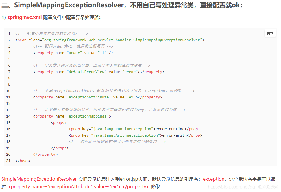 simpleMappingExceptionResolver.setExceptionMappings(properties); //设置异常与视图映射信息的,默认通过${exception} 获取,可修改