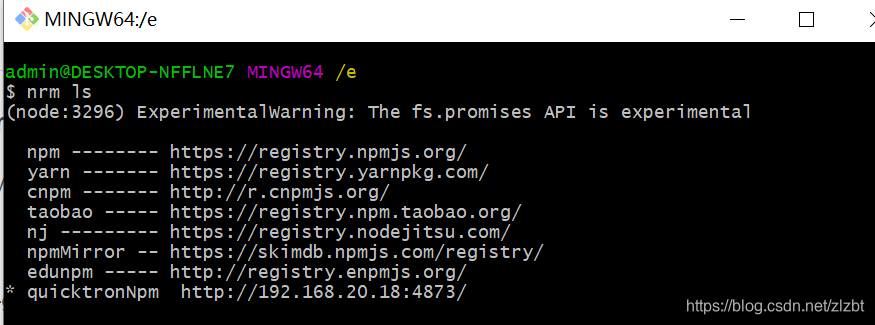 1:执行命令nrm ls查看可选的源。带*的是当前使用的源