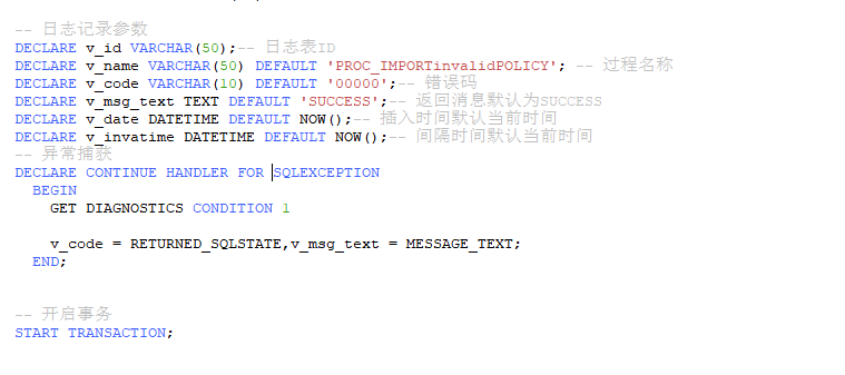 DECLARE v_msg_text TEXT DEFAULT 'SUCCESS';-- 返回消息默认为SUCCESS