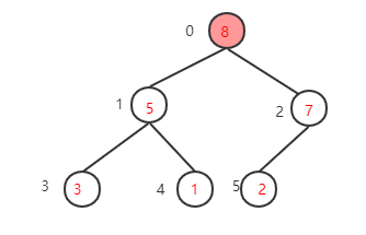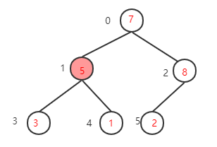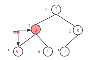 (其实就是当前坐标-1就行了这里为2-1=1),该节点的值为3小于其左子树的值5,交换值,交换后该节点值为5,大于其右子树的值1,不需要交换