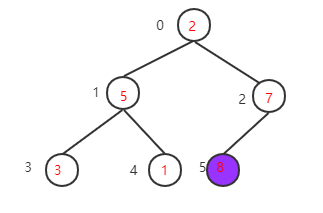 8只有一个左子树,左子树的值为2,8>2不需要调整