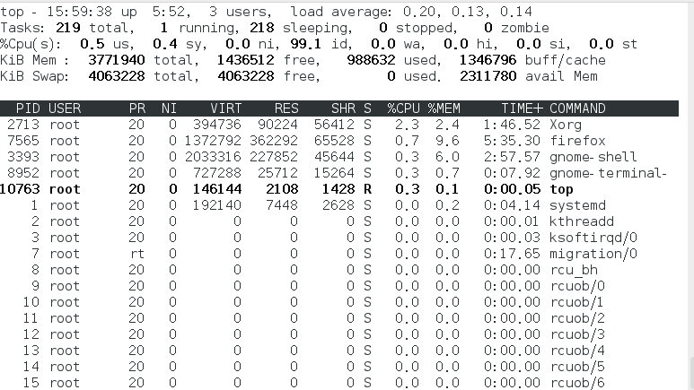 top命令提供了实时的运行中的程序的资源使用统计。可以根据内存的使用和大小来进行排序。