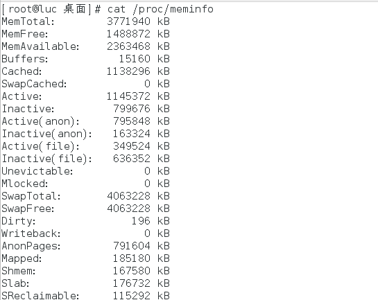 查看动态更新的虚拟文件。内容比较全面,可以查看到许多关于内存的信息。