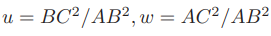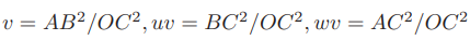并且记 x = OA/OC, y = OB/OC,得: