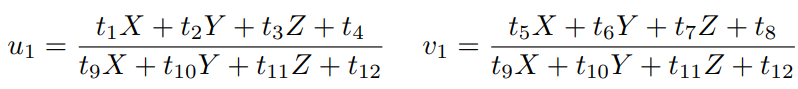 定义 T 的行向量: t1 = (t1, t2, t3, t4) T , t2 = (t5, t6, t7, t8) T , t3 = (t9, t10, t11, t12) T , 于是有: