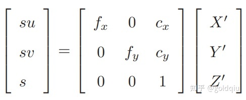 相机投影模型相对于P′则为: su = KP′