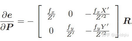 首先,记变换到相机坐标系下的空间点坐标为 P′,并且将其前三维取出来: P′ = (exp (ξ∧)P)1:3 = [X′,Y′,Z′]T