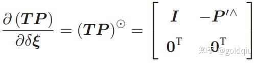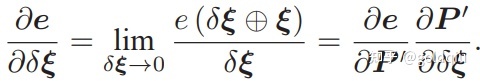 第二项为变换后的点关于李代数的导数,得: