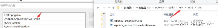 然后在系统环境变量中加入opencv的路径,D:\opencv\build\x64\vc15\bin