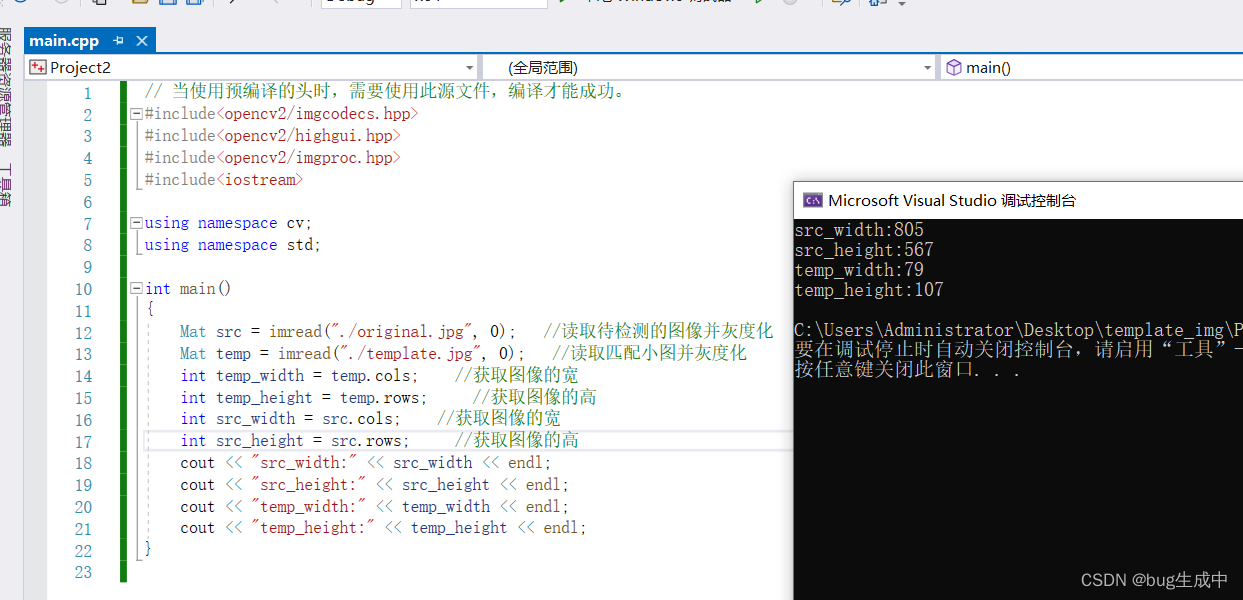 }以上测试没有问题之后,我们就可以进行c++版本的模板匹配测试了。