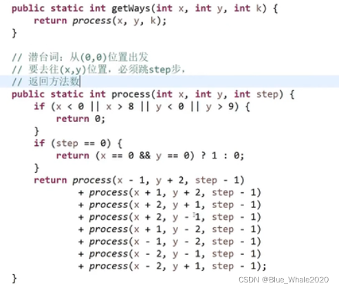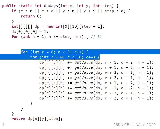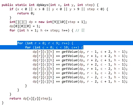 中国象棋,马停留在左下角,给出a,b 就是马要去的位置,马一定要跳k步,到ab的方法数有多少,这个代码是反过来走了