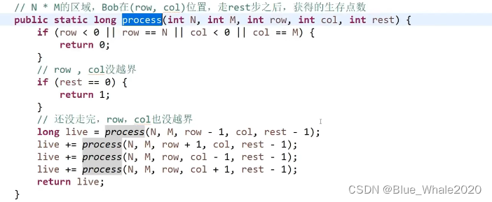 先返回bob活下来的次数,可以理解为long live = 0 ; live += ;live+=;live+=;live+=;,就是在每一层递归都把live初始化为0就行