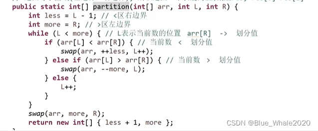 当前数小于number,把当前数和小于等于区域的下一个数做交换,小于等于区域右扩,当前数也跳转到下一个