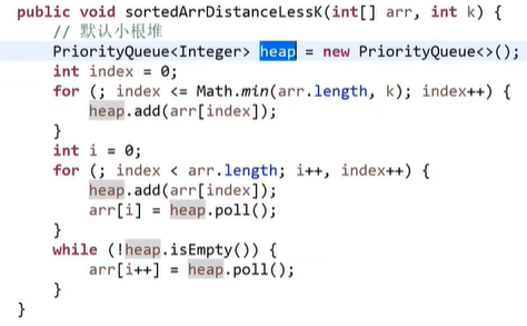 假设这是一个从小到大的问题,我们就建立一个heapsize为K+1的小根堆,做heapify,把小根堆的最小值放在0位置上。