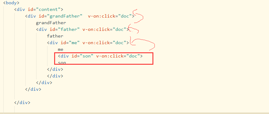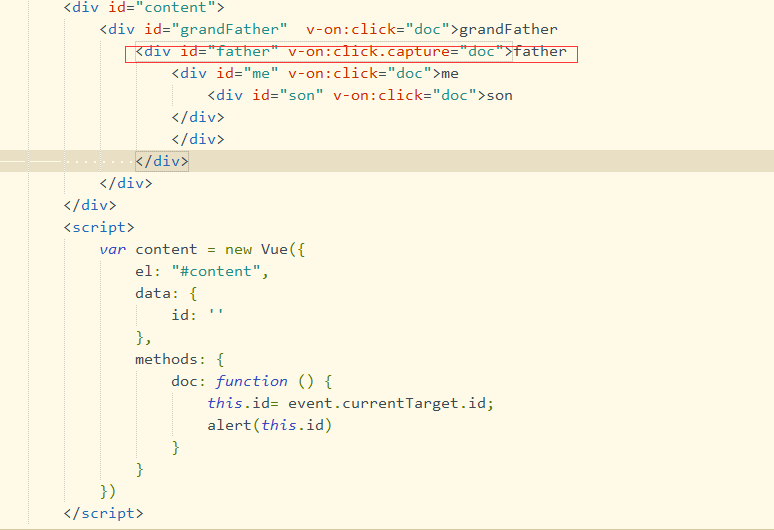 在father 上增加一个.capture <div id="father" v-on:click.capture="doc">