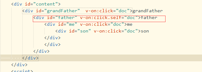 <div id="father" v-on:click.self="doc">