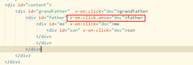 <div id="father" v-on:click.once="doc">