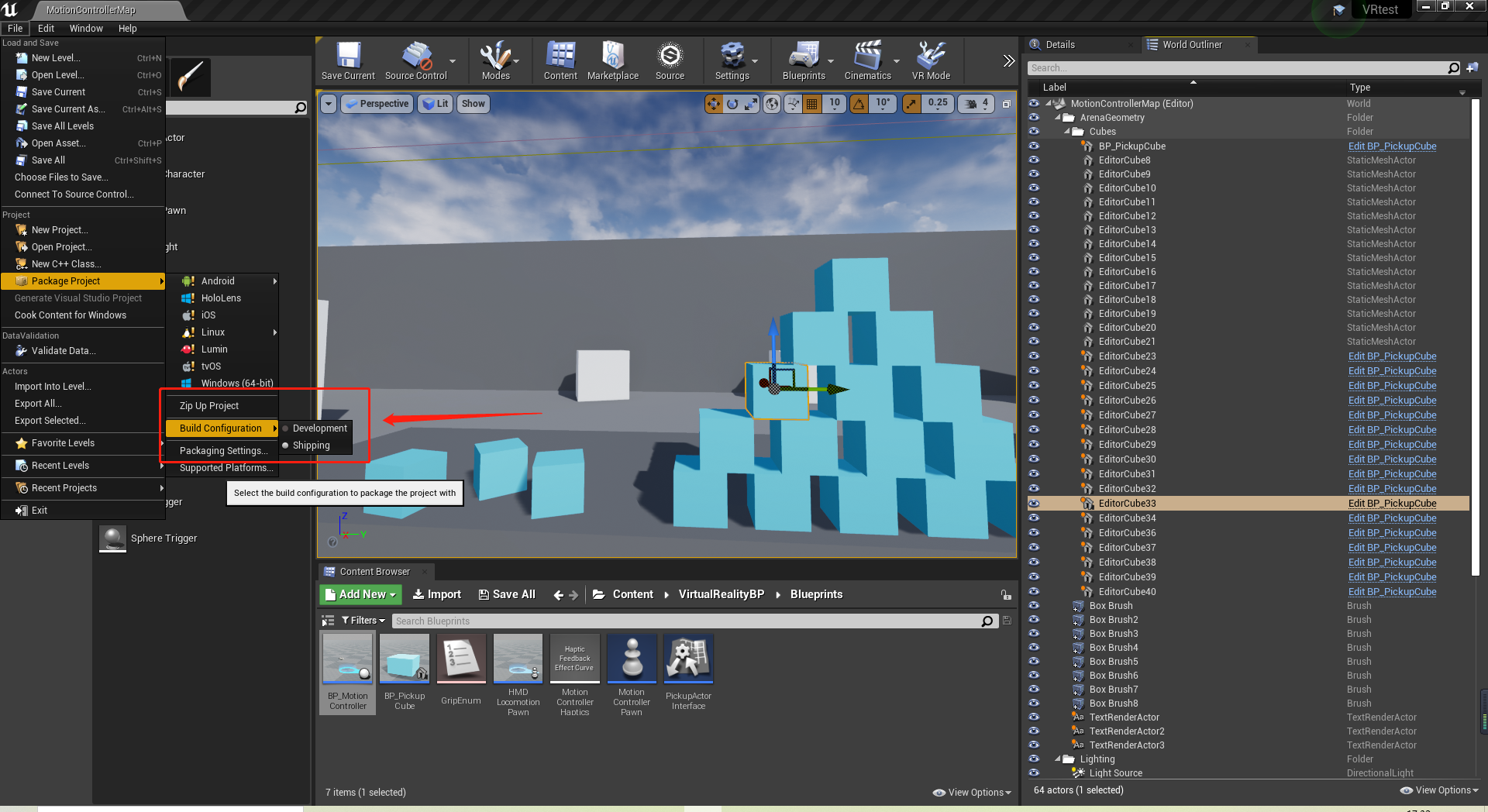 用UE44.24 自己的VR模板进行开发时,发现在编辑器中运行VR时,头盔和手柄的操作都是OK的,但是打包后头盔和手柄会出现失效的问题。解决方法如下: