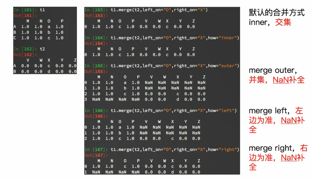 merges通过设置how参数选择两个dataframe的连接方式,有内连接,外连接,左连接,右连接,下面通过例子介绍连接的含义。
