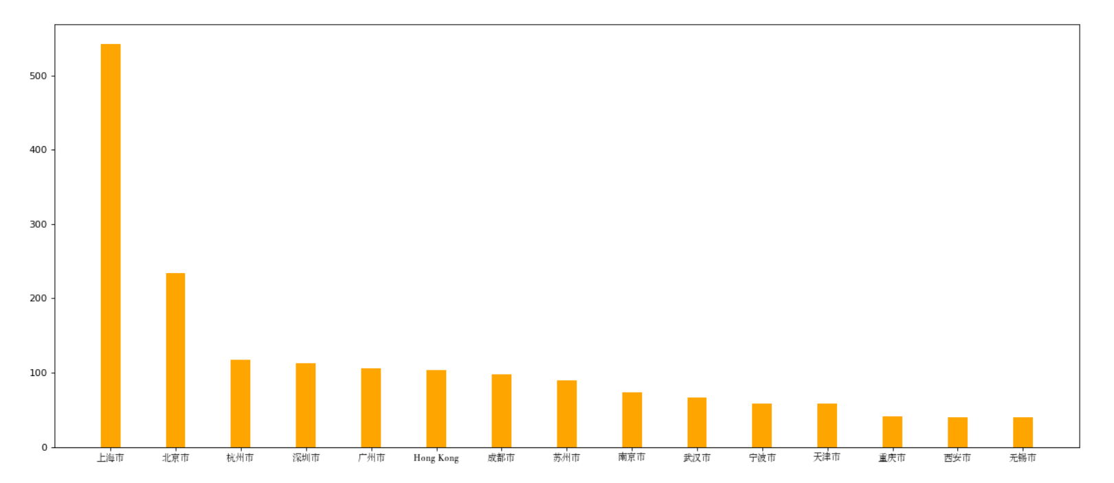 2、使用matplotlib呈现出中国每个城市的店铺数量