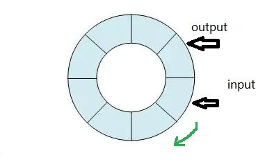 一开始input/output 指向同一个位置,每写入一个数据,input 顺时针移动一次;