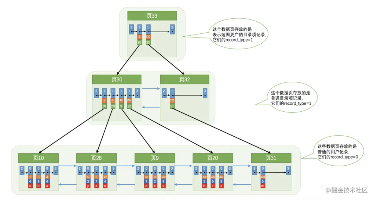 InnoDB设计者发现这个目录项与数据记录十分相似,只不过目录项的两个列是页号和主键。所以他们将目录项视作一条记录按照相同方式进行管理(record_type为1的记录即为目录项记录)。