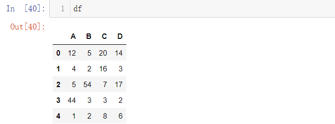 df = pd.DataFrame({"A":[12, 4, 5, 44, 1],