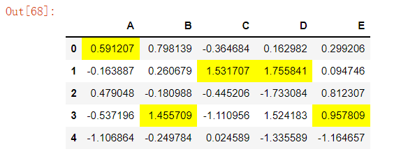 df = pd.DataFrame(np.random.randn(5, 5), columns=list('ABCDE'))