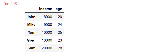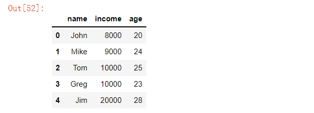 df = pd.DataFrame(data, index = ['John', 'Mike', 'Tom', 'Greg', 'Jim'])