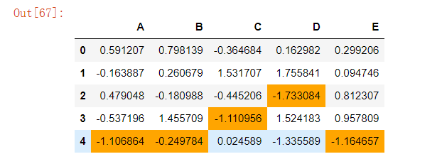 pandas还能够对数据集当中的数据进行上色,我们可以通过该方法将某些我们觉得重要的数据给标注出来,例如我们对数据集中每列的最大值和最小值标注出来