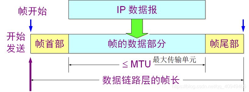- 最大传输单元MTU(Maximum Transfer Unit):帧数据部分长度上限。