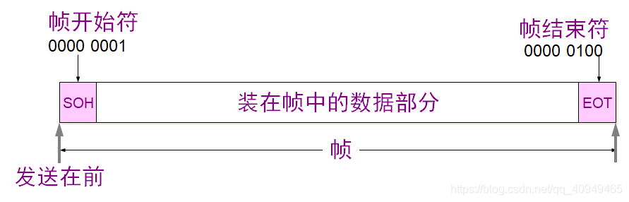- 控制字符SOH(Start Of Header)放在一帧的最前面,表示帧的首部开始。
