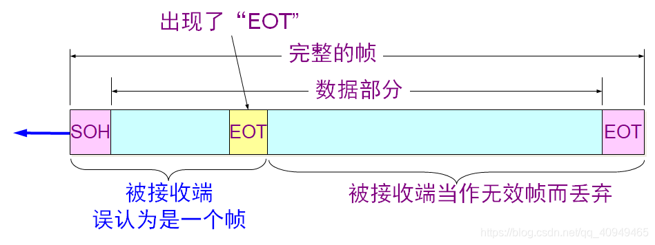 - 控制字符EOT(End Of Transmission)表示帧的结束。