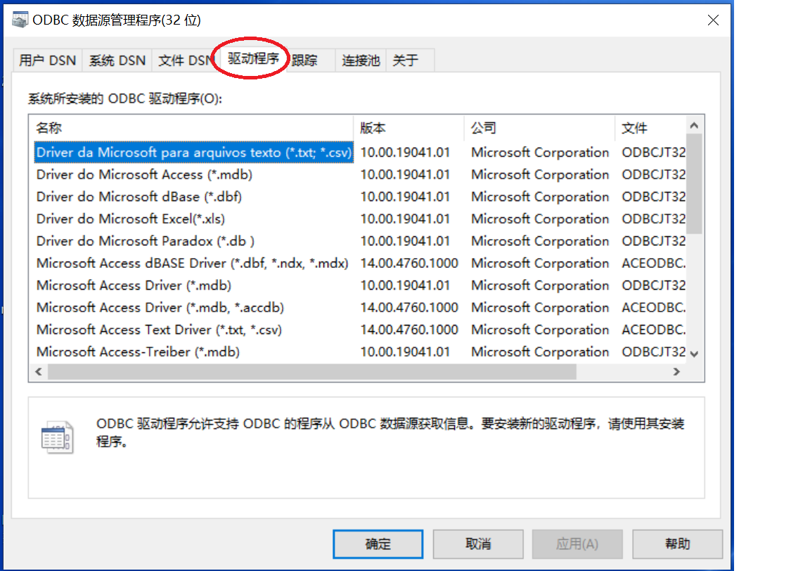 (1)、在ODBC数据源管理程序(32位)的【驱动程序】选项卡中找不到MySQL ODBC驱动程序。