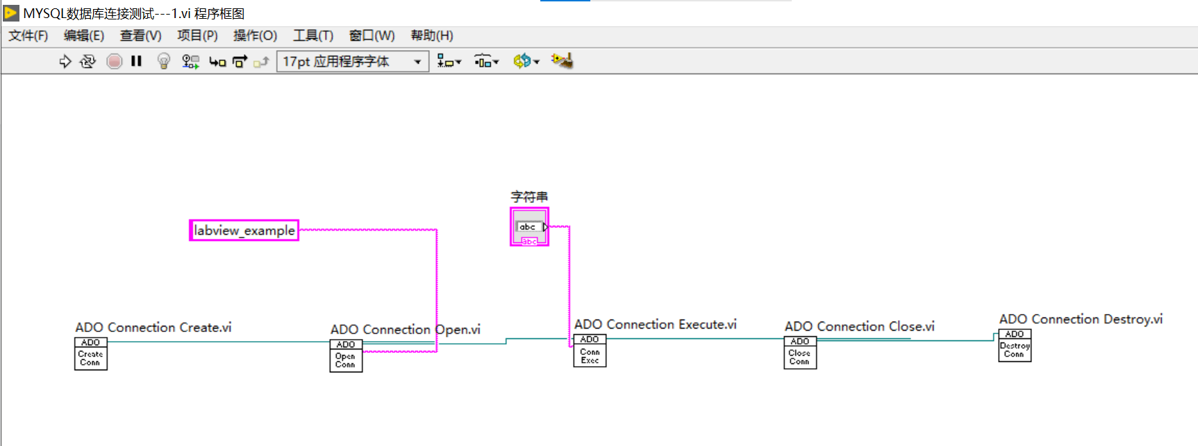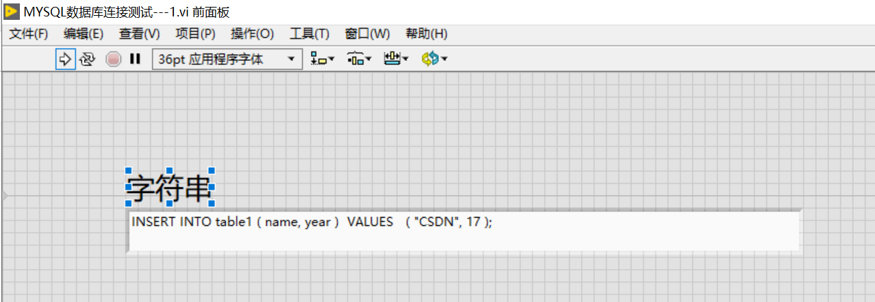 运行LabVIEW2020,可以观察到LabVIEW2020连接MySQL数据库成功,并将字符串输入控件中设置的数据成功写入到数据库labview_example。