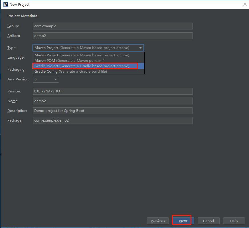 2.项目管理工具选择gradle,点击Next